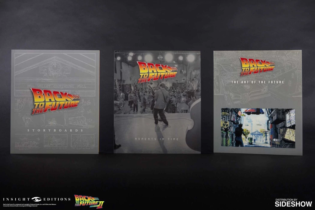 Esta edición única de coleccionista viene con un diseño de caja y sobrecubierta exclusivos y un estuche especialmente diseñado. También como novedad en la edición de coleccionista se incluyen varios insertos exclusivos que no se encuentran en el libro comercial, incluyendo una entrada al museo Biff Tannen, escenas eliminadas y desplegables de arte de póster, entradas para el estreno de Back to the Future , planos para el condensador de flujo y el analizador de ondas cerebrales, y mucho, mucho más. Además, la edición de coleccionista incluye tres folletos de 32 páginas con imágenes inéditas de las tres películas: uno centrado en la fotografía del set, otro en el arte futurista de la segunda película y otro en el storyboard creado para la trilogía.