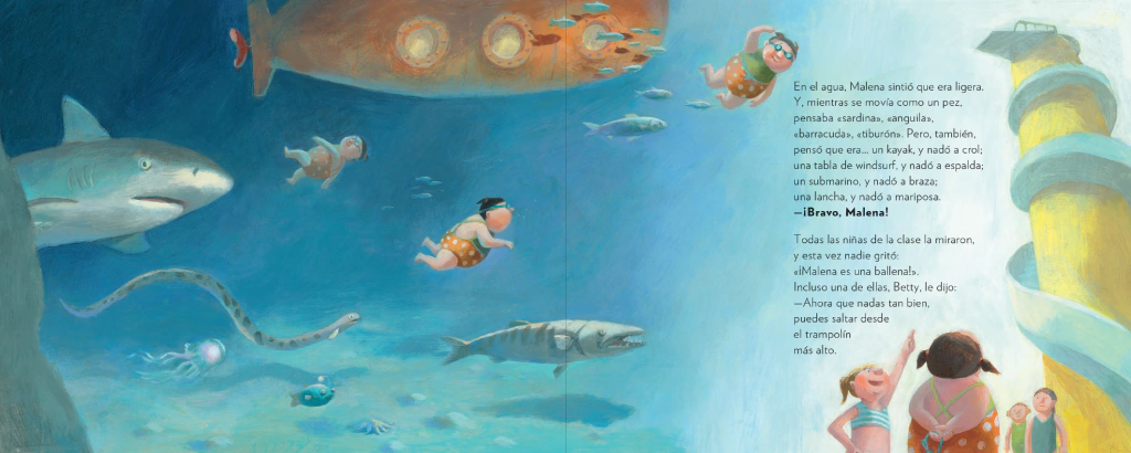 En la piscina, las niñas se reían de Malena. Y es que Malena pesaba mucho, demasiado. Tanto que la llamaban ballena. Pero un día, el monitor de natación le enseñó un truco y su vida comenzó a cambiar... Un personaje entrañable que vive la realidad de muchos niños y niñas; un tema delicado tratado con sentido del humor, desde el respeto y el fomento de la autoestima.
