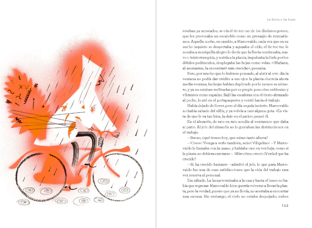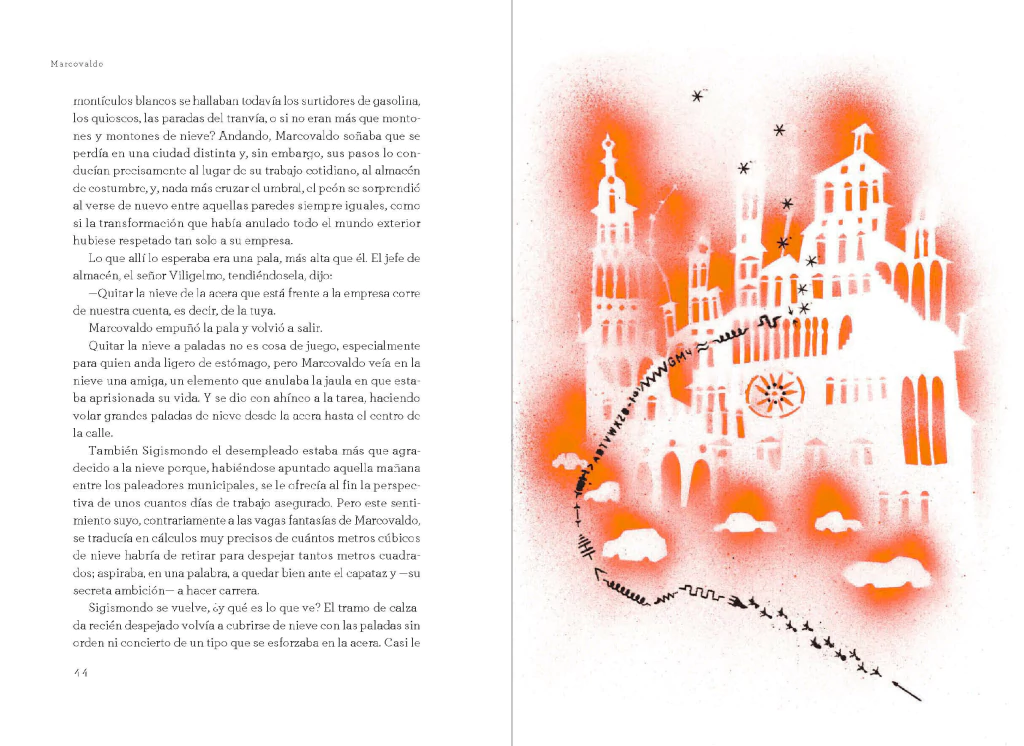 Marcovaldo, un obrero, padre de familia numerosa y subalimentada, es un hombre con problemas económicos, y el progreso humano no lo beneficia: para él no es sino una escalada depredadora que le causa melancolía. Texto delicioso, Marcovaldo o sea las estaciones en la ciudad, es, como todas las obras de Italo Calvino, una tierna invitación a la reflexión sobre las circunstancias de la vida urbana y la relación del habitante de la ciudad con una naturaleza que solo se le insinúa y apenas lo roza. La vitalidad de estos relatos es tributaria no solo de su motivación argumental sino también de la profunda energía poética que los impulsa.